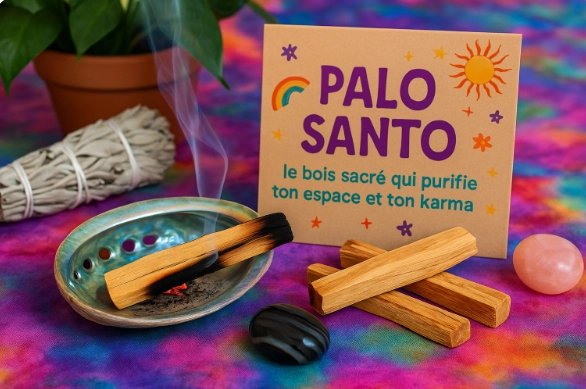 Le Palo Santo, littéralement “bois sacré” en espagnol, est un bois aromatique originaire d’Amérique du Sud. Utilisé depuis des siècles par les peuples autochtones, il est aujourd’hui l’un des chouchous des rituels énergétiques modernes. Et on le comprend : il sent bon, il apaise, il purifie… Bref, c’est un peu le stick magique que ton aura attendait.